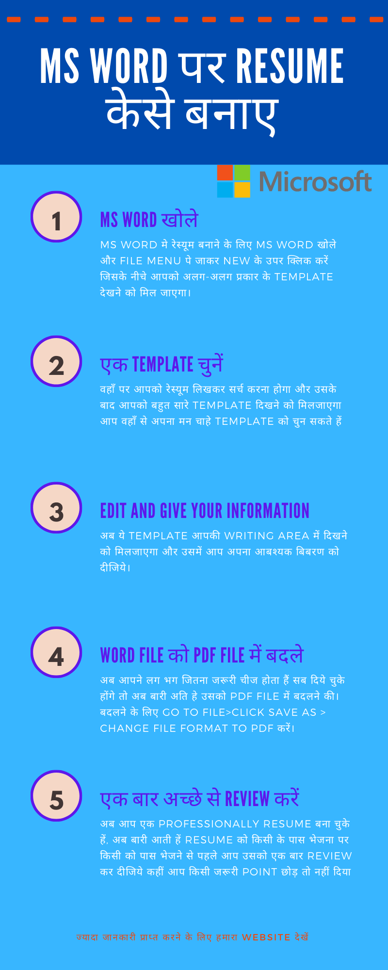 आज हमने देखा कि MS Word की सहायता से हम कैसे खूबसूरत Resume बनाएं, Resume को कैसे PDF में परिवर्तन करें और Resume बनाते वक्त क्या क्या करना चाहिए और क्या क्या नहीं करना चाहिए। मुझे उम्मीद है कि आपको MS Word mein resume kese banaye समझ में आया होगा। यदि आप इसके बारे में कुछ सलाह देना या पूछना चाहते हैं तो Comment में पूछ सकते हैं। हम जरूर आपका Comment का जवाब देंगे। ये लेख को अपने Social Media पर शेयर करके इसके बारे में अपने दोस्तों को जरूर बताएं। धन्यवाद।